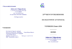 Journée Rémoise du diagnostic anténatal Le 13 mars 2026 Salons de l’Hippodrome 3, avenue du Psdt Kennedy REIMS Programme en cliquant sur l’image